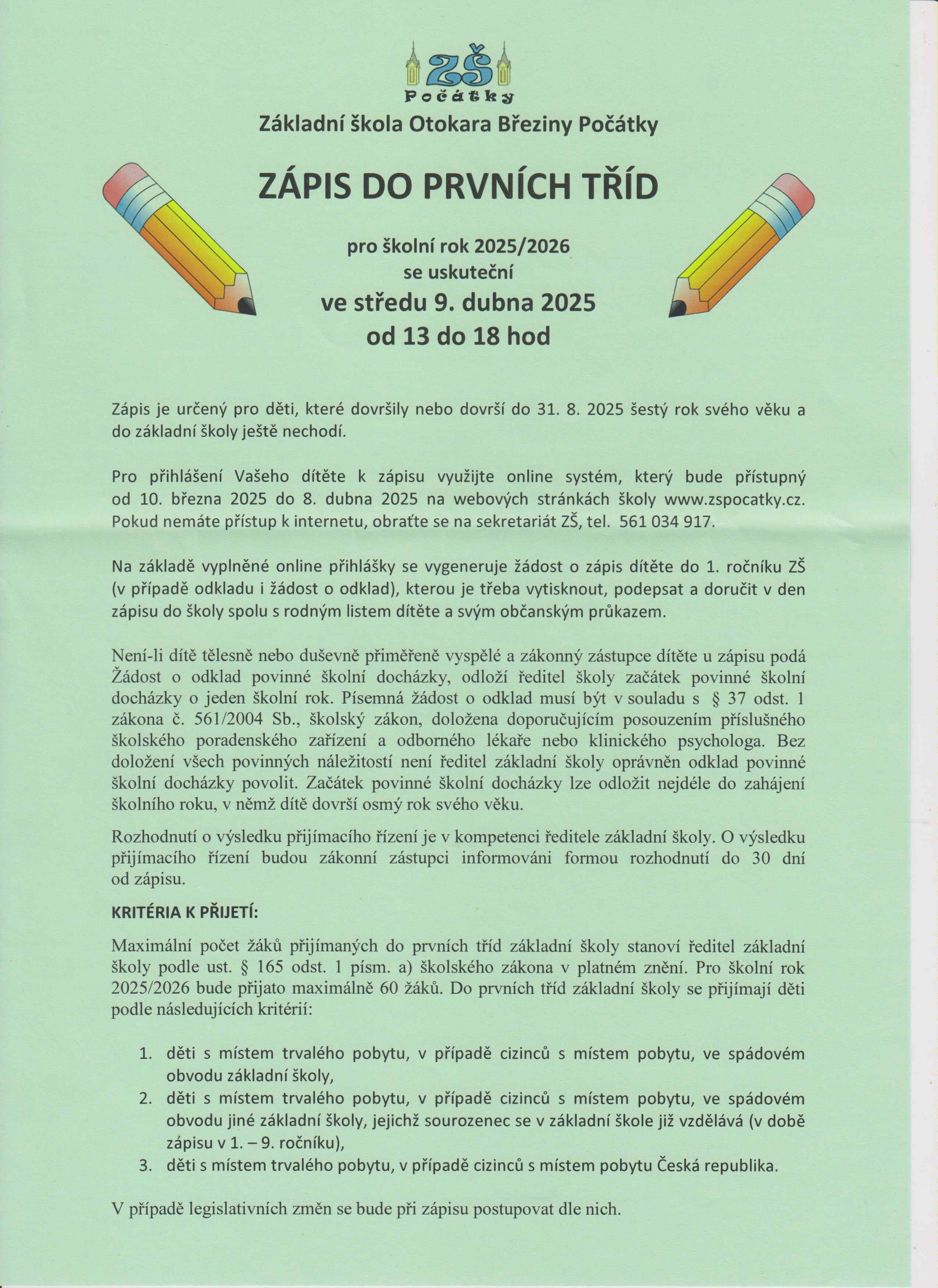 Zápis dětí do první třídy 9.4.2025
