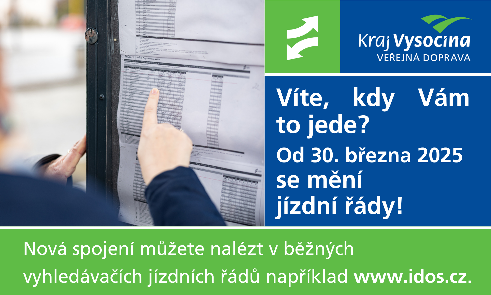 Kraj Vysočina: Změna jízdních řádů 30.3.2025