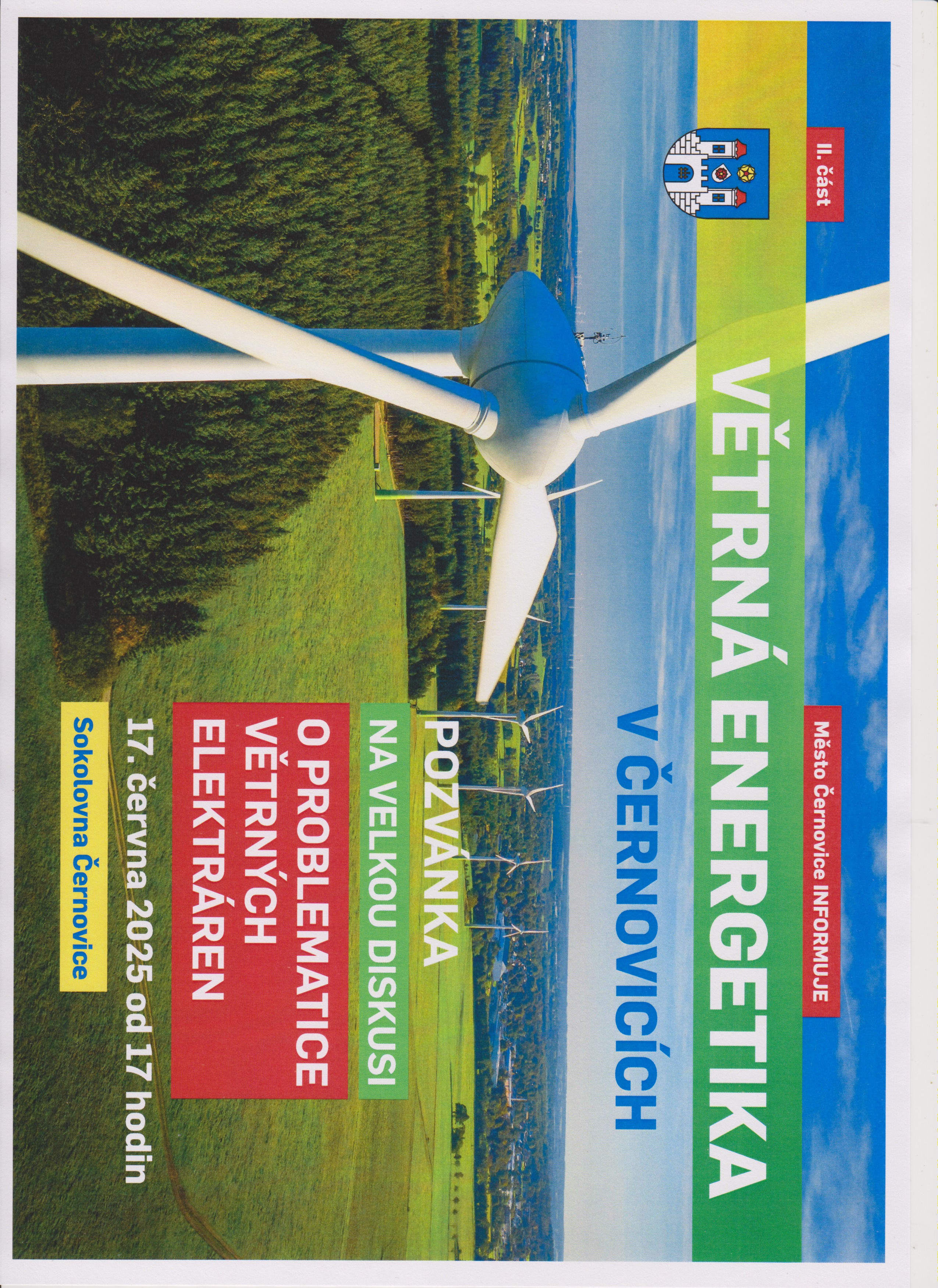 Pozvánka na velkou diskuzi o problematice větrných elektráren Černovice 17.6.2025